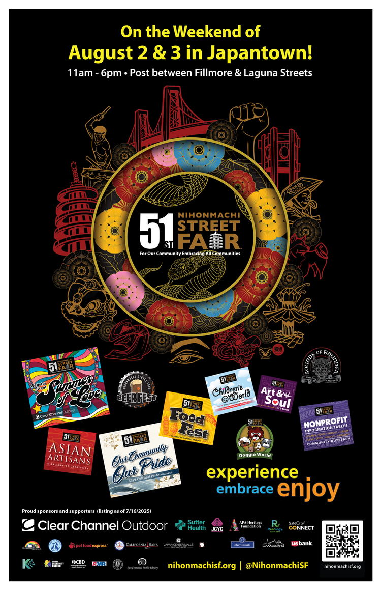 The 51st Annual Nihonmachi Street Fair is coming to San Francisco's Japantown on August 2nd & 3rd, 2025! Join in for an unforgettable weekend celebrating the rich traditions and dazzling diversity of the Asian American, Native Hawaiian, and Pacific Islander communities. Stay tuned for exciting updates as we prepare to bring the spirit of Jtown to life!