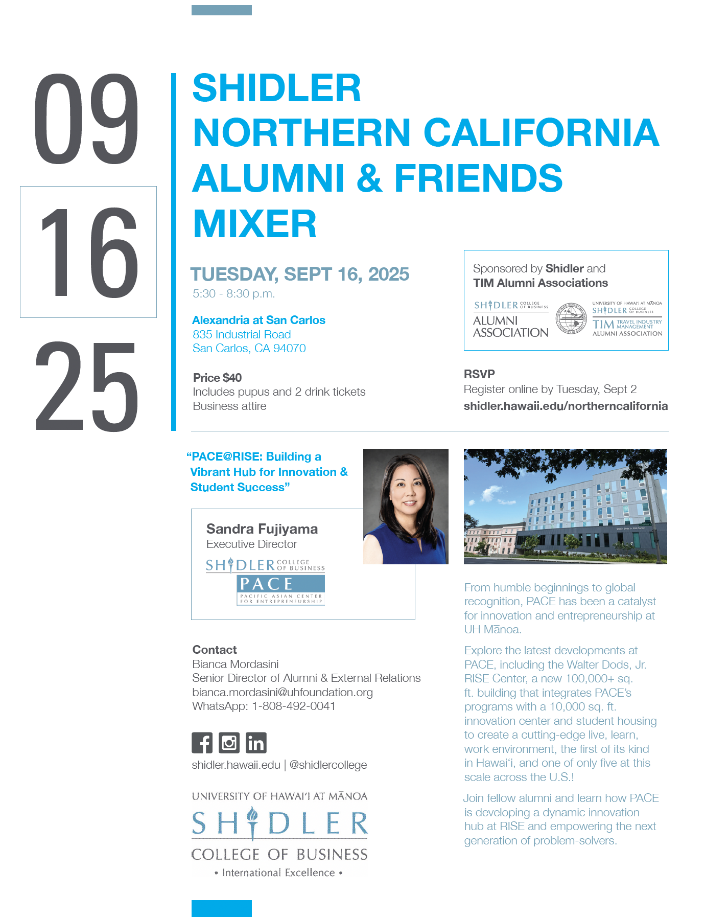 Hear from Shidler PACE Executive Director, Sandra Fujiyama, on the latest developments at PACE including the Walter Dods, Jr. RISE Center.